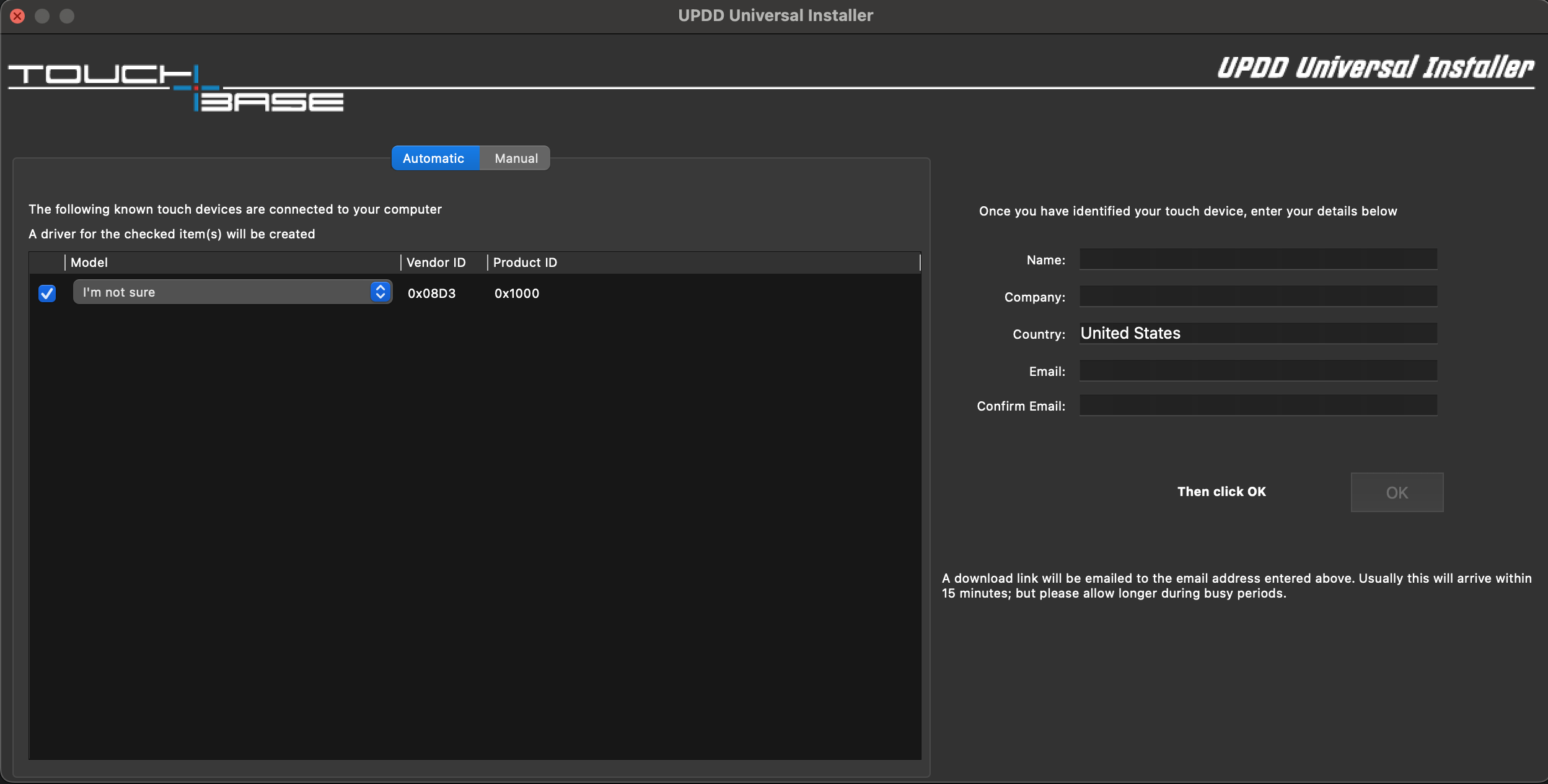 Please complete the form and click ‘OK.’ After submission, the driver will be sent to your inbox within 10 minutes. It is recommended to install this driver to guarantee optimal performance. Ensure you follow all the installation steps and grant the necessary permissions. Failure to do so may result in a non-functional touchscreen, requiring you to repeat the installation process.